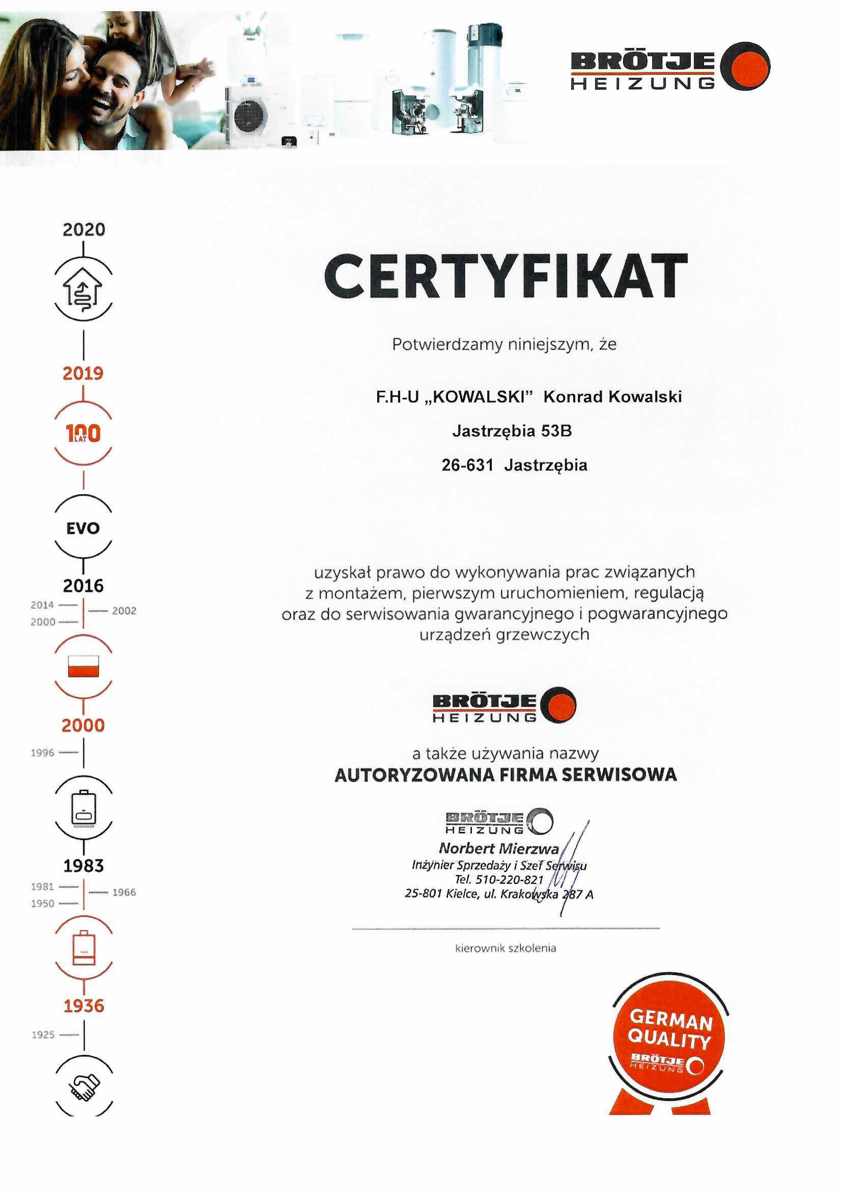 Otrzymane certyfikaty potwierdzają nasze doświadczenie autoryzowanej firmy serwisowej.